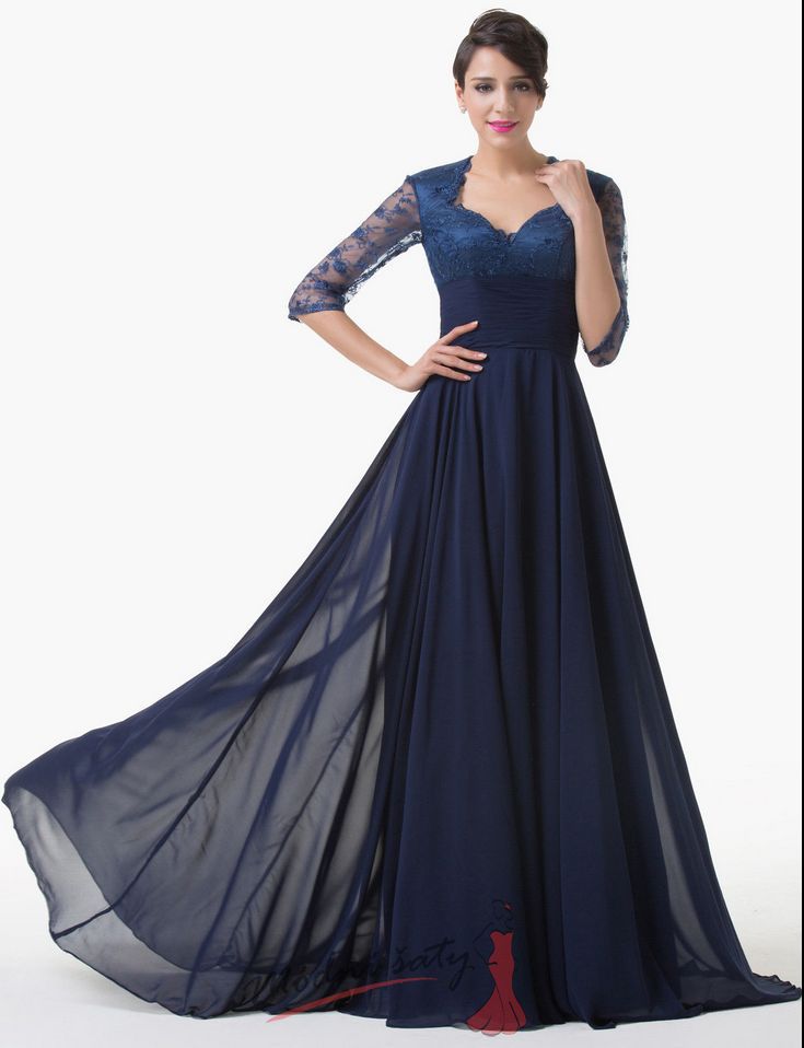 Detailní popis pro Vel. 34.- Společenské šaty v černomodré barvě s rukávky k lo: |